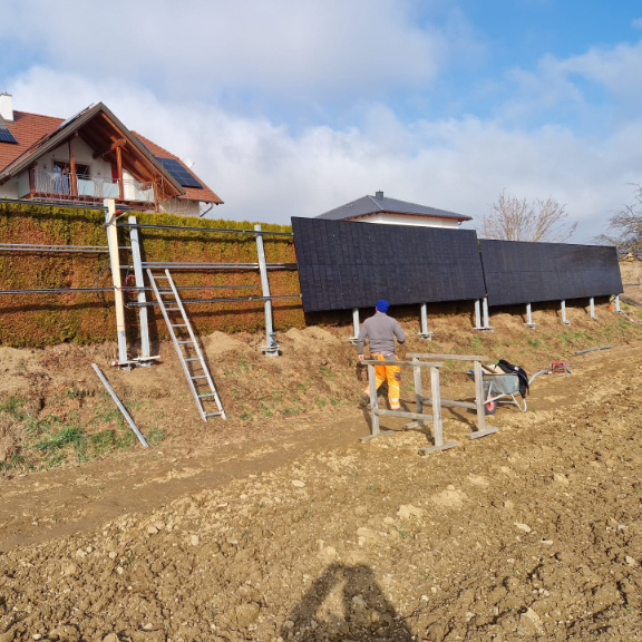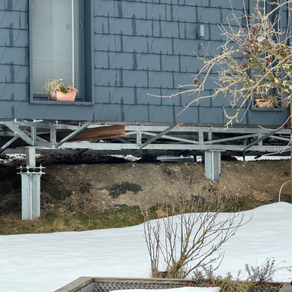 Da wir wegen der starken Hanglage keine Betonfundamente für unsere neue Terrasse setzen wollten, haben wir uns nach kurzer Internetrecherche für Bodenanker entschieden. Nach einer Besichtigung vor Ort wurde prompt ein Angebot erstellt und daraufhin ein Termin für die Montage vereinbart.